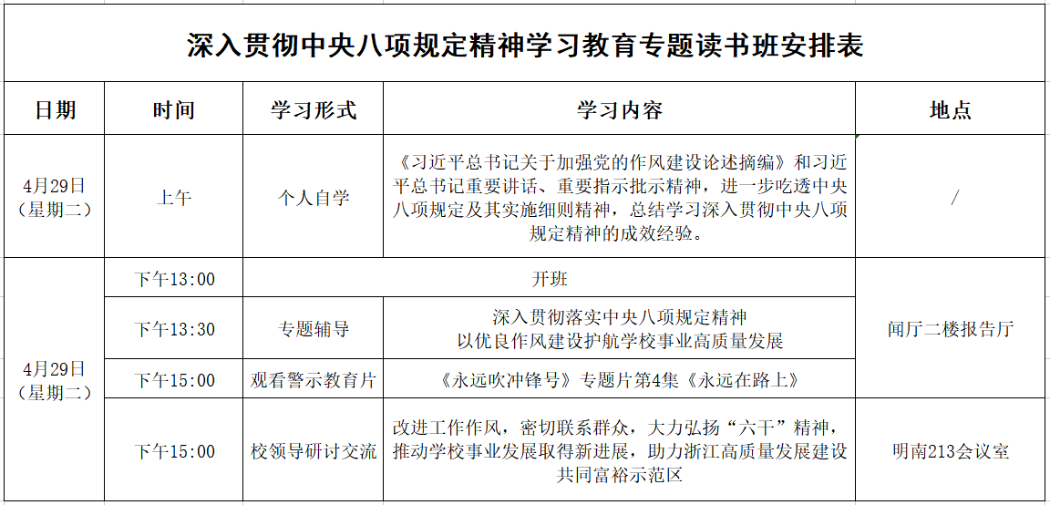 根据党中央部署要求和省委工作安排,按照《中共中国计量大学委员会开展深入贯彻中央八项规定精神学习教育的实施方案》,经研究决定,举办学校深入贯彻中央八项规定精神学习教育专题读书班,现就有关事项通知如下: